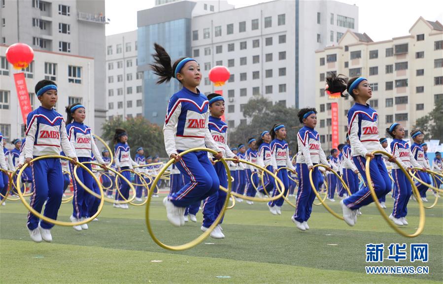 11月4日,蘭州市鹽場堡小學(xué)學(xué)生在活動現(xiàn)場展示呼啦圈操。新華社記者 張智敏 攝