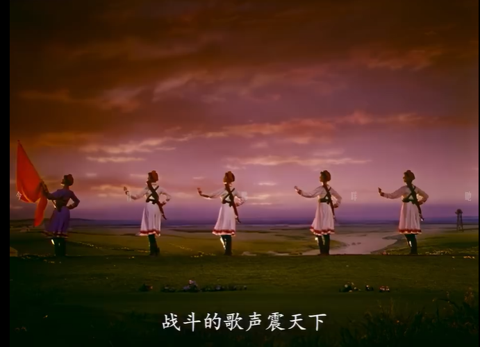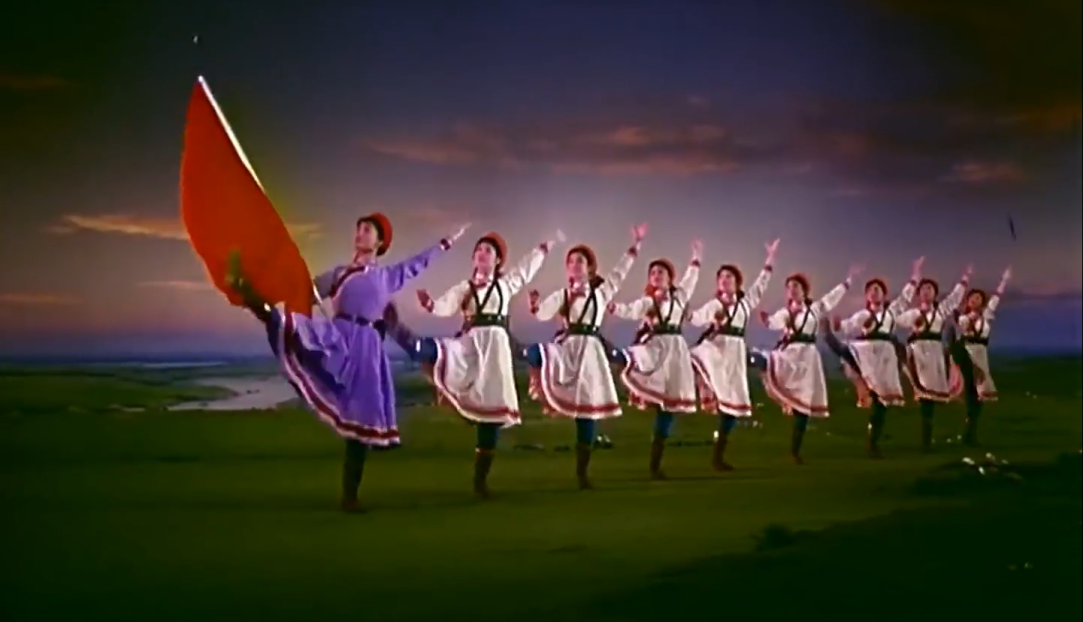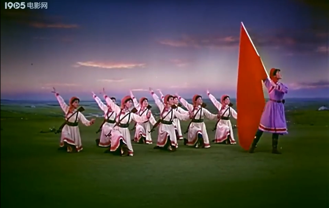 今天,當(dāng)我們談?wù)摗恫菰癖窌r(shí),很大程度上是在談?wù)摗栋倩幤G》中的《草原女民兵》。電影不僅保存了這部舞蹈,更在某種意義上重新定義了它。那些通過鏡頭精心構(gòu)建的畫面,那些經(jīng)過剪輯強(qiáng)化了的節(jié)奏,那些通過混音豐富了的聲音,共同塑造了后世對這部作品的集體認(rèn)知與審美想象。