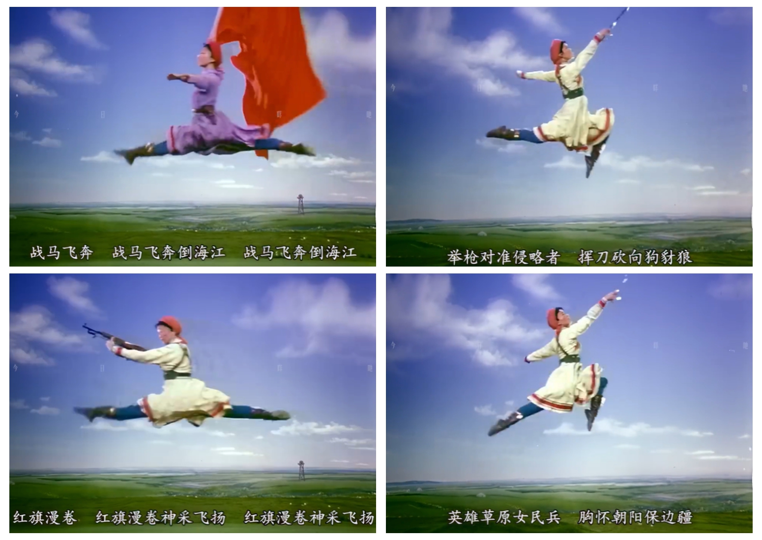 這并非虛構(gòu)的圖景,而是源自錫林郭勒草原的真實(shí)印記。1970年,帶著“到草原看真正的馬與女民兵”的想法,編導(dǎo)黃伯壽、梁文綰等深入牧區(qū)一個多月,將北京知青連長“躍馬遠(yuǎn)射、藏身馬腹”的矯健身姿,與蒙古牧人的豪邁、知青的堅(jiān)韌一同采擷為創(chuàng)作素材,又融合賈作光《牧馬舞》中“勒馬翻身”的經(jīng)典語匯,為舞蹈注入了靈魂 。舞臺上的每一個動作,都凝結(jié)著文工團(tuán)少女們的千錘百煉:每日清晨五點(diǎn)半的軍號、繞軍區(qū)大院的晨跑、浸透練功服的汗水,將十幾歲的青春擰成紀(jì)律與柔美交織的繩——既有“召之即來,來之能戰(zhàn)”的鏗鏘,亦有少女對美的執(zhí)著向往。