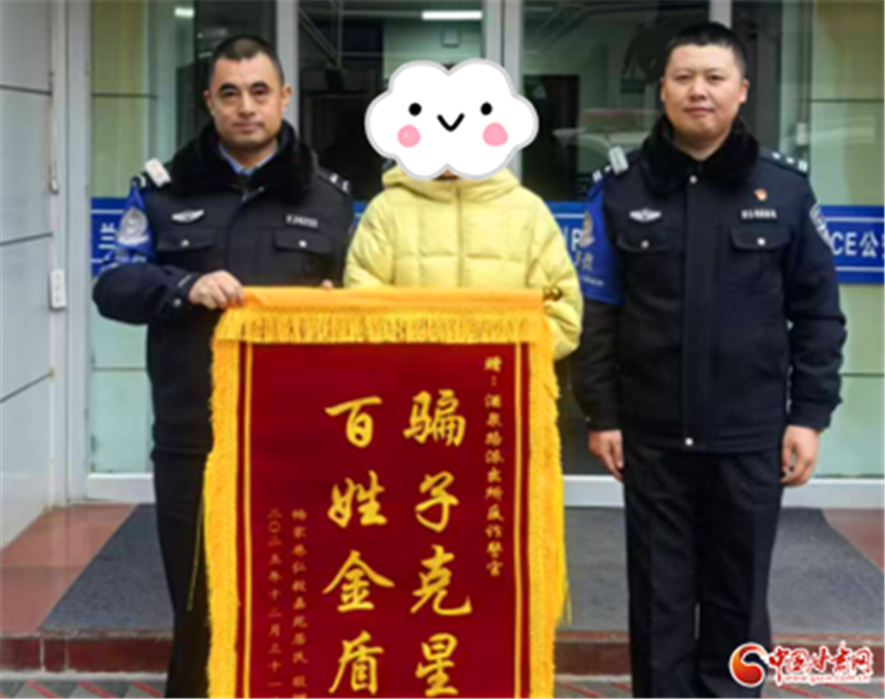 新年伊始,蘭州市公安局城關(guān)分局酒泉路派出所收到了一份特殊的“新年禮物”:轄區(qū)居民王女士將一面“騙子克星 百姓金盾”的錦旗,送到民警張繼勝、宋健偉手中,感謝民警在緊急時(shí)刻為其保住160萬(wàn)元資金。