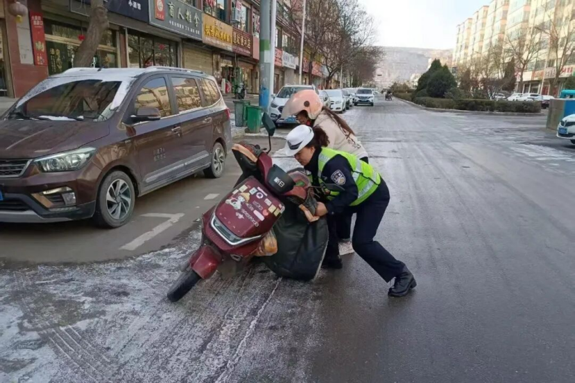 雨雪寒潮之中,定西公安交警始終堅(jiān)守崗位,在疏堵保暢的同時(shí),化身“暖心衛(wèi)士”,主動(dòng)為受困群眾和車輛提供貼心救助。面對(duì)積雪路面車輛打滑、拋錨等突發(fā)情況,民輔警們不畏嚴(yán)寒,俯身推車、幫助安裝防滑鏈、排查車輛故障;針對(duì)出行不便的老人、學(xué)生等群體,主動(dòng)攙扶護(hù)送,耐心解答指引、提供應(yīng)急幫助。一幕幕暖心瞬間在雨雪街頭不斷上演,贏得過往群眾紛紛點(diǎn)贊。
