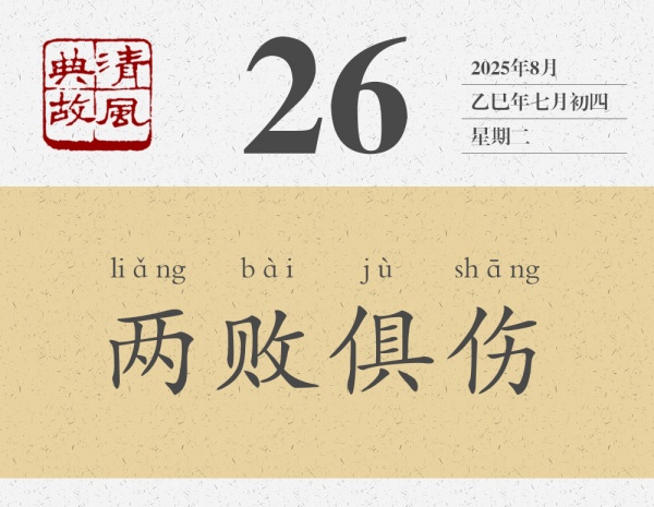 講完這個(gè)故事,陳軫言歸正傳,對(duì)秦惠王說(shuō):“今韓魏相攻,期年不解,是必大國(guó)傷,小國(guó)亡,從傷而伐之,一舉必有兩實(shí)。此猶莊子刺虎之類也。”秦惠王聽(tīng)從了陳軫的建議,后來(lái)“大國(guó)果傷,小國(guó)亡,秦興兵而伐,大克之”。后世即以“兩敗俱傷”為典,比喻爭(zhēng)斗雙方都會(huì)受到損失,誰(shuí)也得不到好處,也用來(lái)形容毫無(wú)意義的爭(zhēng)斗。《新五代史•宦者傳論》:“雖有圣智,不能與謀。謀之而不可為,為之而不可成。至其甚,則俱傷而兩敗。”