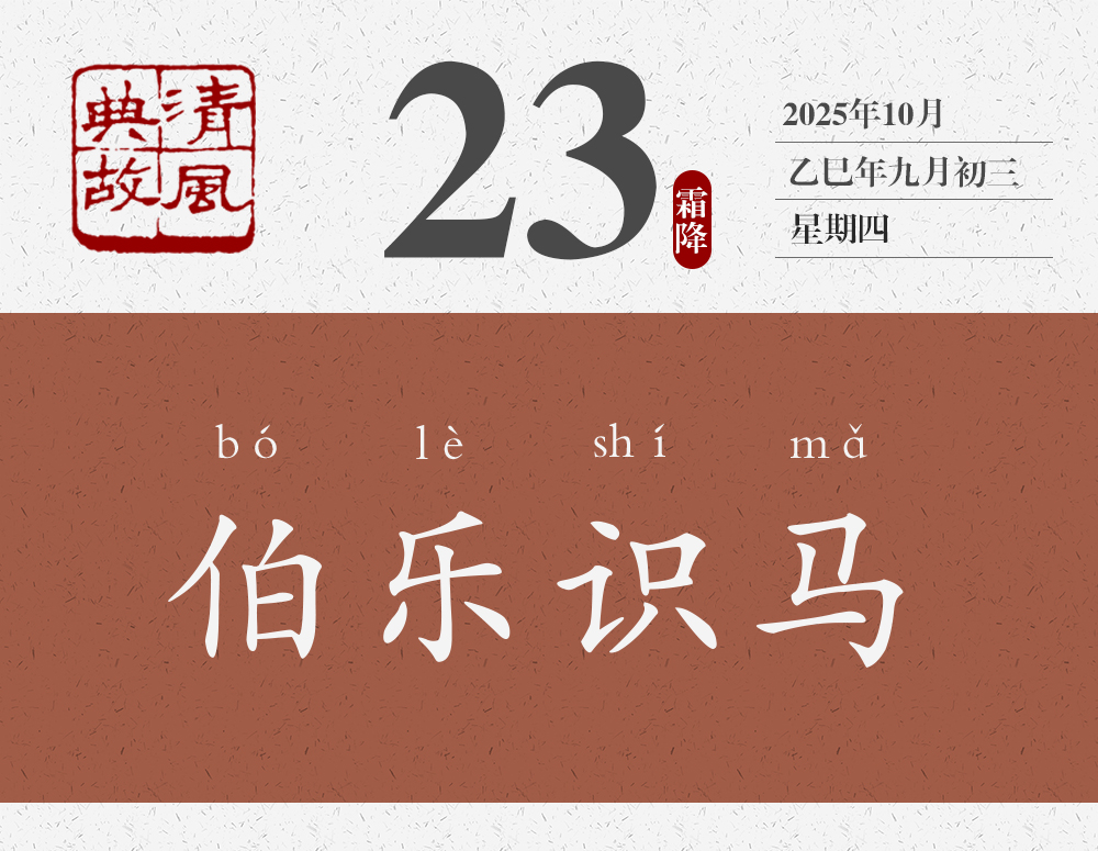春秋秦穆公時,有一個著名的相馬師叫孫陽。因為神話傳說中,掌管天馬的神仙叫伯樂,人們?yōu)榱吮硎緦O陽的敬佩,就稱他為伯樂。屈原《九章•懷沙》以及《莊子•馬蹄》《列子•說符》都曾經(jīng)提到過伯樂?!稇?zhàn)國策•楚策四》里,春申君的舍人汗明,向春申君講了一個關(guān)于千里馬的故事:“夫驥之齒至矣,服鹽車而上太行。蹄申膝折,尾湛胕潰,漉汁灑地,白汗交流,中阪遷延,負(fù)轅不能上。伯樂遭之。下車攀而哭之,解纻衣以冪之。驥于是俛而噴,仰而鳴,聲達(dá)于天,若出金石聲者,何也?彼見伯樂之知己也。”