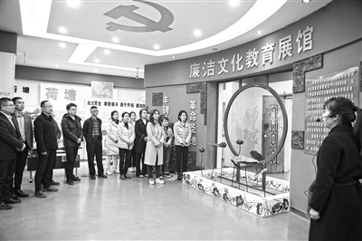 江西省景德鎮(zhèn)市紀(jì)委監(jiān)委充分挖掘本土廉潔文化資源,推動(dòng)建立生動(dòng)的廉潔教育實(shí)體課堂,著力鍛造忠誠干凈擔(dān)當(dāng)、敢于善于斗爭的紀(jì)檢監(jiān)察鐵軍。圖為該市紀(jì)委監(jiān)委干部參觀景德鎮(zhèn)荷塘廉潔文化教育基地,接受廉政教育。歐陽晨君 攝