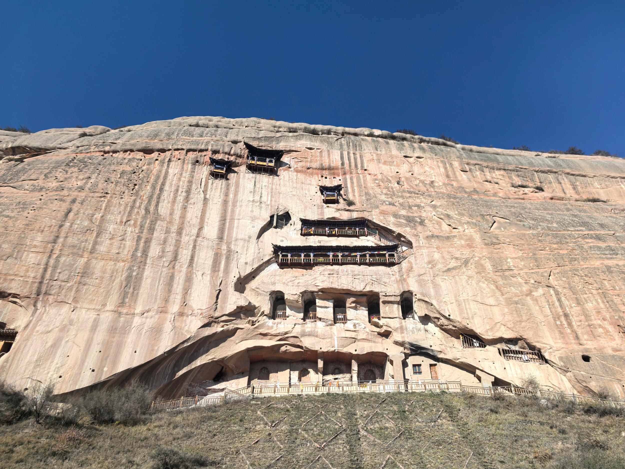 10月17日,探訪第四站,頂端新聞?dòng)浾邅淼綇堃词校挥谄钸B雪山腳下的馬蹄寺石窟群,探訪這座將棧道鑲嵌在山體之內(nèi)的石窟,在肅南感受裕固族的民俗風(fēng)情。