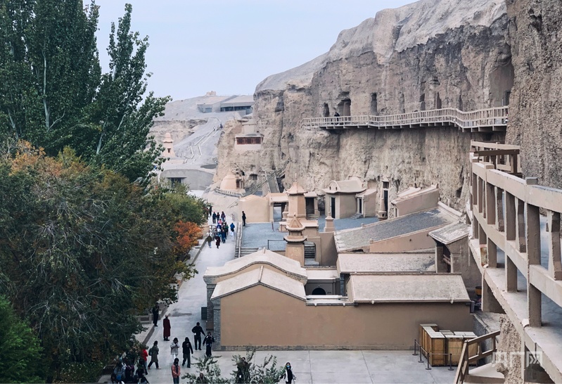 榆林窟的參觀棧道(央廣網(wǎng)記者李紅軍攝)