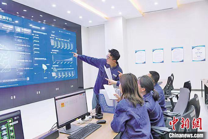 隴東能源大數(shù)據(jù)中心工作人員討論分析監(jiān)測數(shù)據(jù)變化情況。(資料圖)路世玲 攝