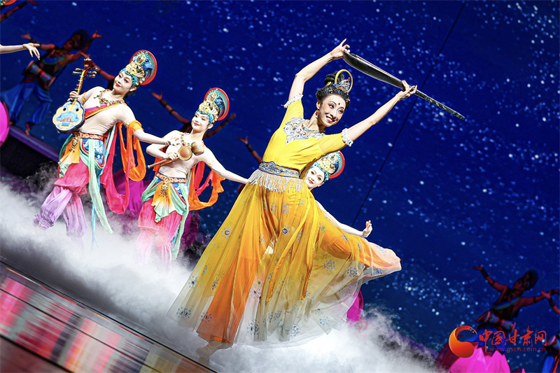 中國甘肅網9月21日訊(西北角·中國甘肅網記者 宋芳科 任磊 黃宛悠 鄭蕓蕓)絲路長風奏和合樂章,花雨繽紛迎四海賓朋。9月20日晚,在第八屆絲綢之路(敦煌)國際文化博覽會即將啟幕之際,敦煌大劇院內華燈初上、舞韻生輝、樂聲流淌,舞劇《絲路花雨》新版作為文博會迎賓演出震撼上演。這部承載著46年藝術積淀的中國舞劇經典,以“守敦煌舞韻之根,創(chuàng)時代表達之新”的藝術實踐,為與會全球嘉賓帶來了一場穿越千年的文化藝術盛宴。