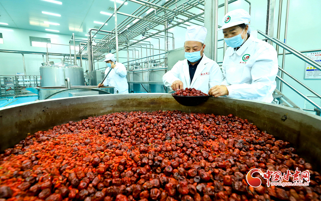 11月19日,張掖市臨澤縣一家食品企業(yè)的紅棗數(shù)字化車間里,全自動飲料生產(chǎn)線高效運轉(zhuǎn),每日可產(chǎn)出紅棗枸杞營養(yǎng)飲料、棗夾核桃、棗片等休閑食品十余噸,供應(yīng)青海、新疆、內(nèi)蒙古、寧夏等地市場。