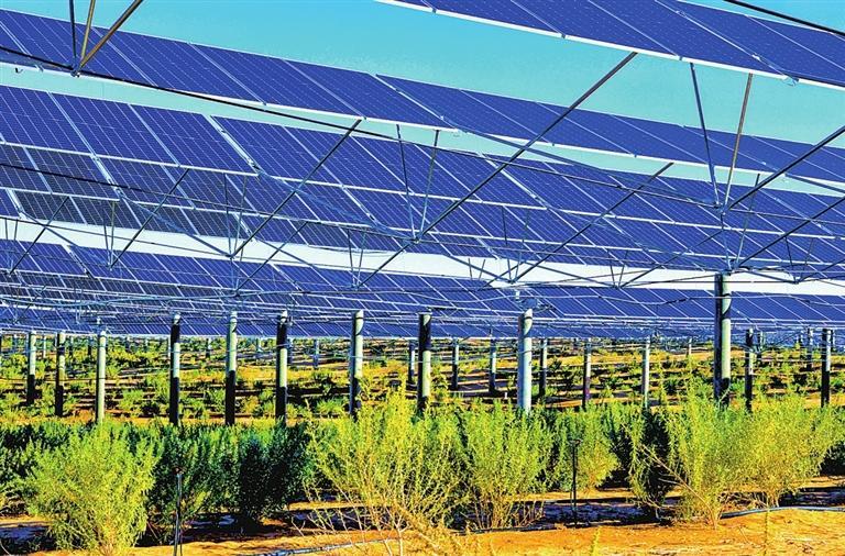涼州區(qū)打造“板上發(fā)電、板間經(jīng)濟、板下固沙”的復合生態(tài)產業(yè)。