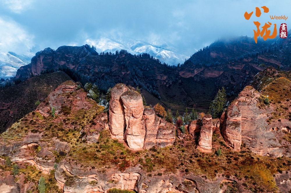 晨光中,雪色與丹霞相映生輝;暮色里,赤巖與積雪共染余暉。這幅景象既有西北的蒼茫,又不失江南的婉約,是自然贈與的視覺盛宴。