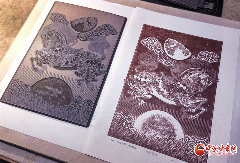 從彩陶紋樣到飛天神韻,從黃河之濱到絲路駝鈴,當傳統(tǒng)技藝遇上現(xiàn)代思維,當?shù)赜蛭幕鲎踩蛞曇埃w寧的刀刻人生,既是個人對藝術的執(zhí)著追求,更是一位非遺傳承人對文化根脈的深情守護。正如他所說:“版畫不是冰冷的木板,而是有溫度的文化記憶。”在這方寸之間的刻板上,甘肅的故事正被重新書寫,非遺傳承也在時代語境下實現(xiàn)著創(chuàng)造性轉(zhuǎn)化,綻放出更加絢爛的光彩。