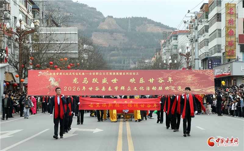 在新城路南關(guān)十字,這場以“龍馬躍盛世 歡樂甘谷年”為主題的聯(lián)歡匯演正式啟幕。作為“2026如意甘肅大眾文藝全民秀”的重要組成部分,匯演由56個方陣、34輛彩車、15個板塊構(gòu)成,分別象征著56個民族同心、34個行政區(qū)域同行、15個鄉(xiāng)鎮(zhèn)同向,既彰顯著全縣上下紅心向黨的赤誠,也全面展現(xiàn)了古冀大地的非遺魅力與昂揚奮進的時代風貌,處處涌動著丙午馬年的磅礴春潮。