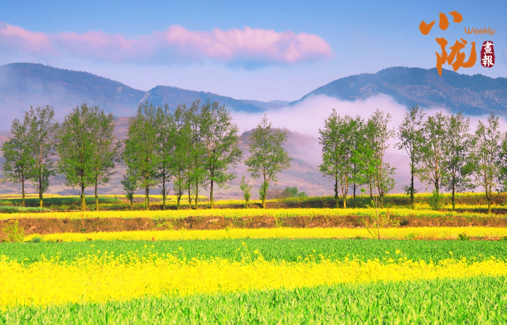 澄澈的藍(lán)天銜著粉紫流云,眼前是望不到頭的油菜花田,明黃的花浪在風(fēng)里翻涌,田埂邊的樹木抽出嫩綠新芽,春日的鮮活與靈動,全在這山野間漾開。