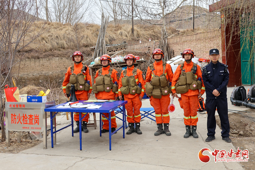 甘肅消防救援機動總隊蘭州支隊消防救援人員聯(lián)合甘肅省連城國家級自然保護區(qū)管理局、連城鎮(zhèn)政府、蘭州市公安局森林分局連城派出所在明家莊村阿虎狼溝設(shè)卡檢查。