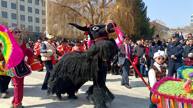2026年正月十三,和政縣城再度因秧歌沸騰。6支秧歌隊(duì)齊聚展演,旱船搖曳、高蹺翩躚、舞獅騰躍、春牛歡騰,街巷人頭攢動(dòng)、歡聲如潮。這場年度非遺盛會(huì),既是傳統(tǒng)儀式的當(dāng)代復(fù)現(xiàn),也是文化根脈的集體喚醒。從民間自發(fā)組織到政府引導(dǎo)保護(hù),從家族口傳身授到系統(tǒng)化傳承推廣,和政秧歌始終保持原生質(zhì)感,不事雕琢、貼近生活,成為連接歷史與當(dāng)下的文化紐帶。