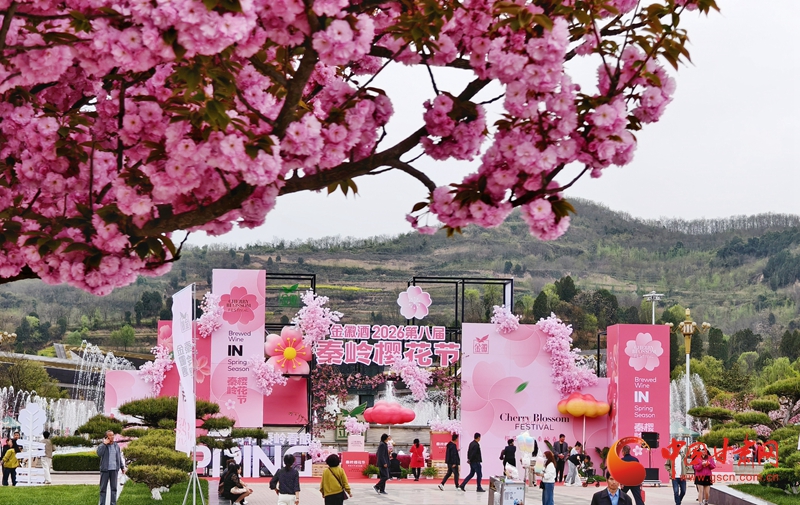 圖為2026第八屆金徽酒秦嶺櫻花節(jié)現(xiàn)場(chǎng)。