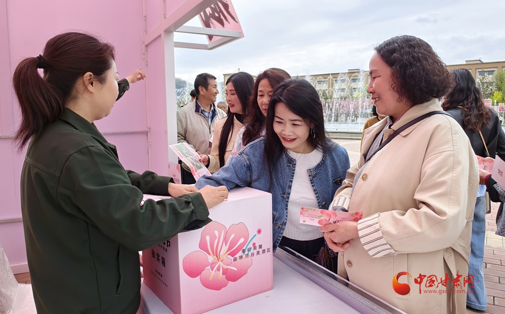4月10日,在金徽酒文化生態(tài)旅游景區(qū)櫻花大道,游客拍照留念,定格美好春光。