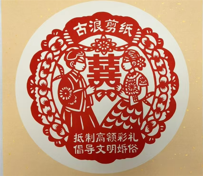 武威古浪宣傳文明婚俗抵制高彩禮的剪紙作品