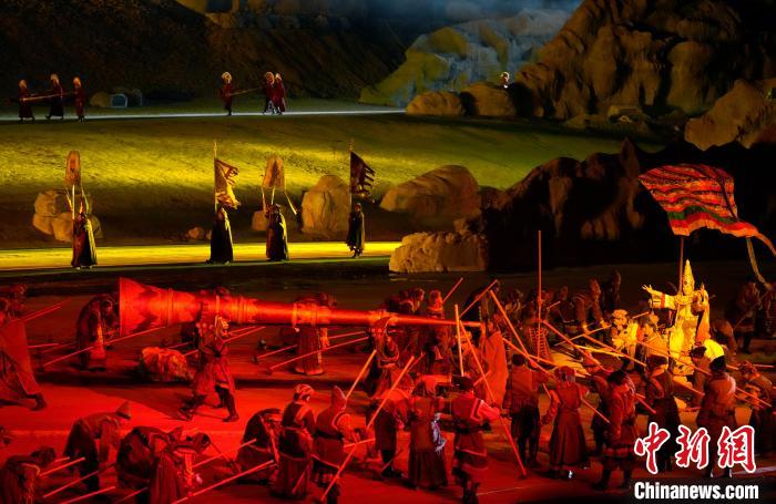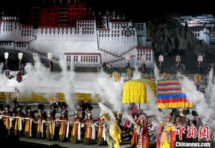 圖為《文成公主》大型實(shí)景劇第十三季演出現(xiàn)場。中新社記者 李林 攝