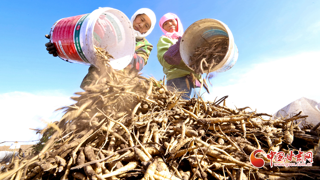 山丹黃參是當?shù)靥赜械脑鷳B(tài)植物特產(chǎn)。近年來,通過對黃參生態(tài)習性、生長規(guī)律及種植技術(shù)的系統(tǒng)研究與探索,山丹黃參終于實現(xiàn)了從野生到人工規(guī)模化種植的突破。今年,當?shù)匾劳?ldquo;公司+合作社+農(nóng)戶”模式,種植黃參5000多畝,畝產(chǎn)在400公斤以上,創(chuàng)下歷年新高,迎來豐收。全國各地食品加工客商的訂單也似雪片般飛來。