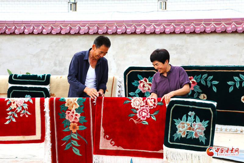 手工地毯,是環(huán)縣非物質(zhì)文化遺產(chǎn)之一,已有近半個世紀的傳承,慕粉萍從事這項技藝也有30多年了。