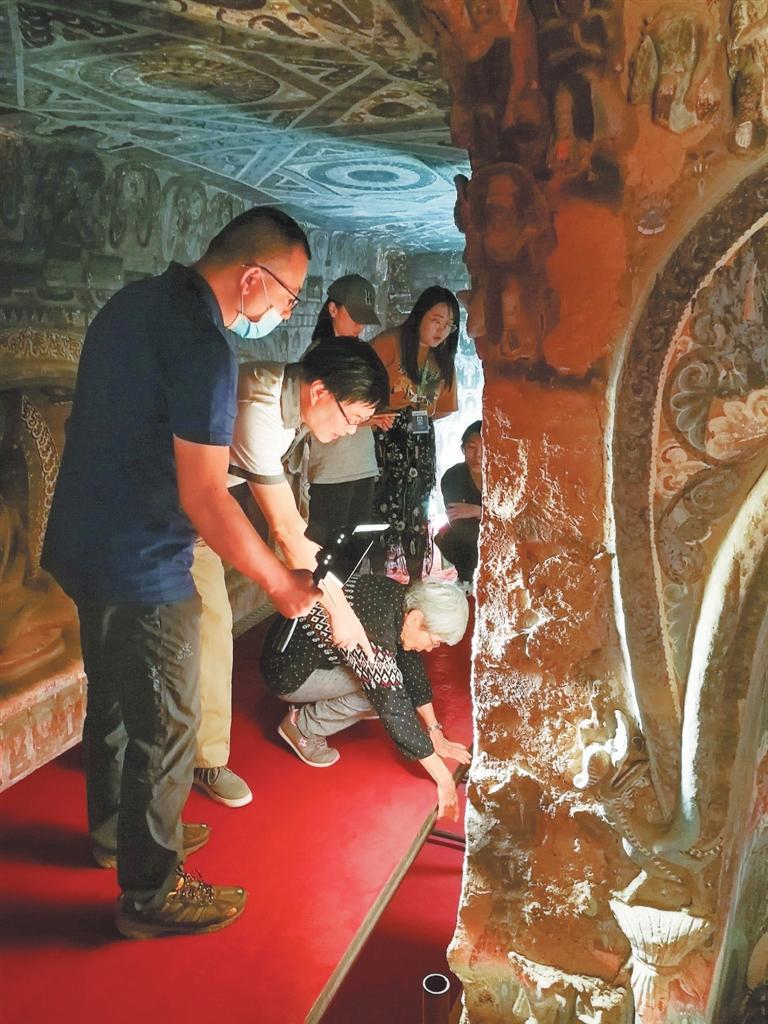 2020年,樊錦詩在莫高窟第254窟指導《敦煌石窟考古報告》第二卷編寫工作。