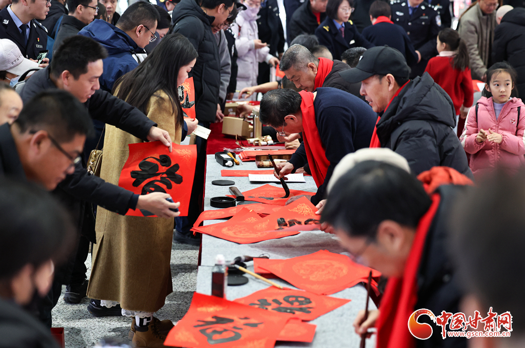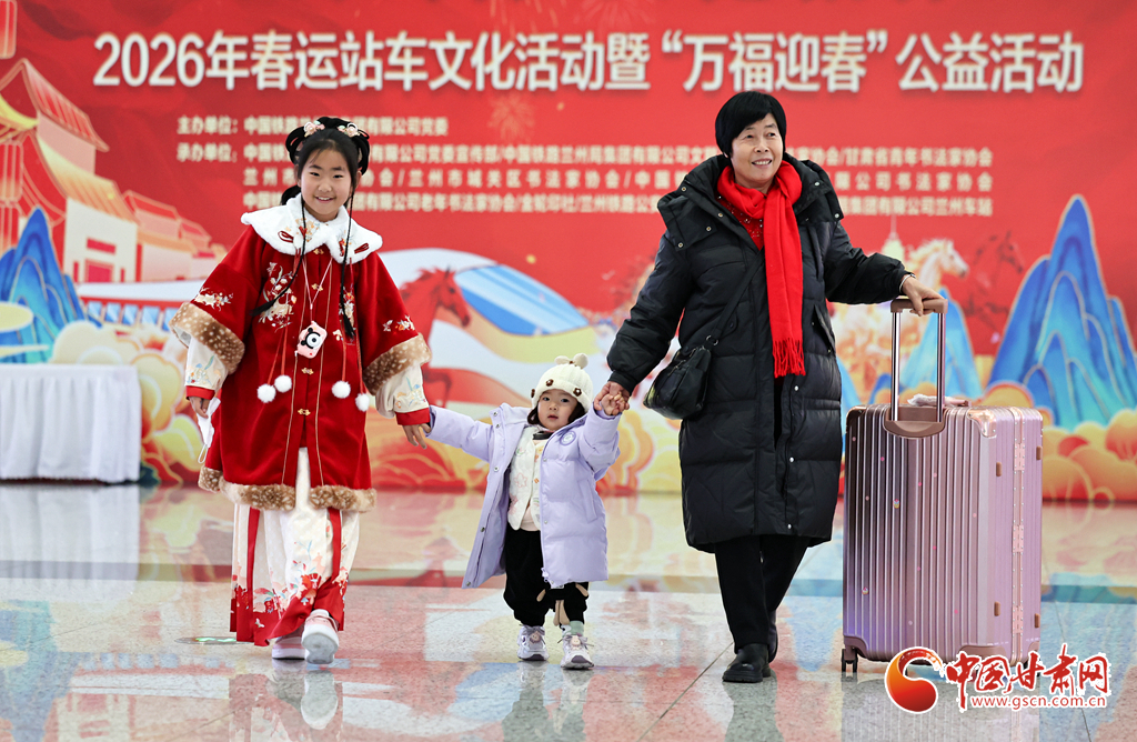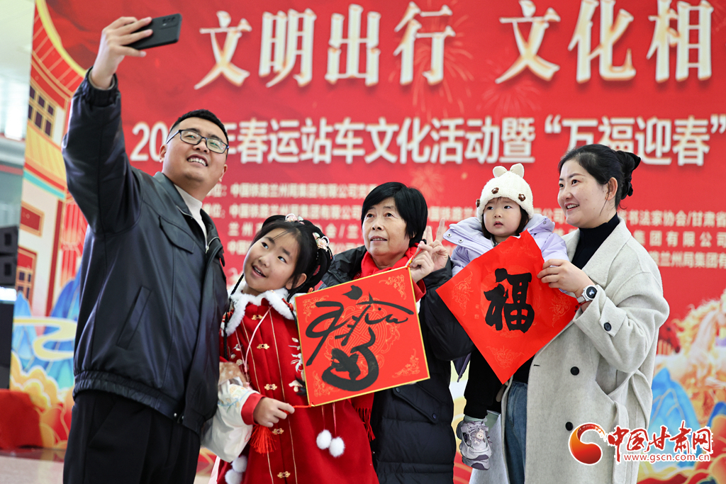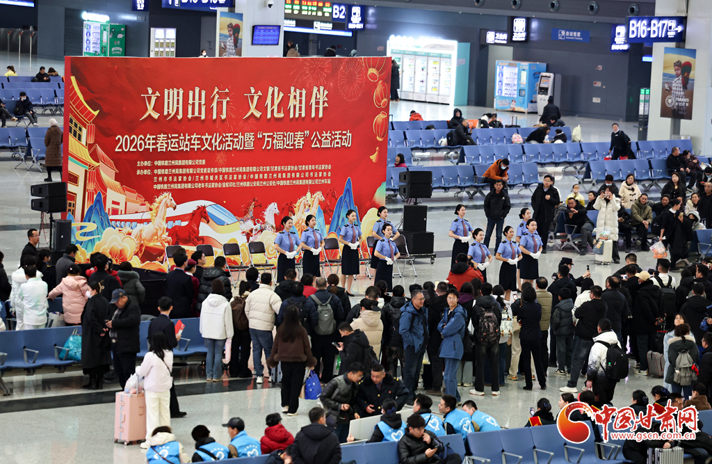 2月2日,2026年鐵路春運大幕正式拉開。中國鐵路蘭州局集團有限公司在蘭州西站候車廳開展“文明出行 文化相伴”特色暖心活動,邀請書法愛好者揮毫寫春聯(lián)、贈“福”字,同時奉上精彩文藝表演,為旅客的回家路增添濃濃年味與溫情。