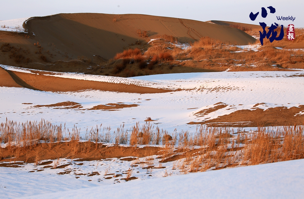 白雪覆蓋著金黃沙丘,而枯黃的蘆葦仍倔強(qiáng)生長于沙地之間。這不僅是色彩的疊映,更構(gòu)成了一幅堅(jiān)韌的畫卷:冷與暖、靜與動(dòng),在遼闊的天地間,交織成一篇關(guān)于守望與重生的故事。