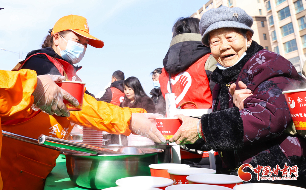 3月3日,張掖市臨澤縣金澤廣場(chǎng)上,志愿者們給群眾煮元宵。