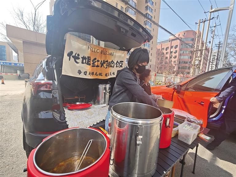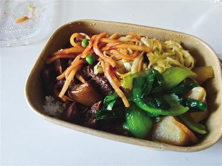 上午11時20分,甘南路民族飯店門口的人行道上,一輛簡易流動餐車準時支起攤位。不銹鋼餐盆里,色澤鮮亮的炒肉片蓋飯熱氣升騰,濃郁香氣順著風飄向周邊寫字樓,短短幾分鐘,攤位前就排起了七八人的小長隊。“老板,一份炒肉片蓋飯,多放青椒和咸菜!”“我要兩份,打包帶走!”熟練打飯、快速裝盒、掃碼收款,一氣呵成,不到20分鐘,桶里的米飯就下去了小半桶。