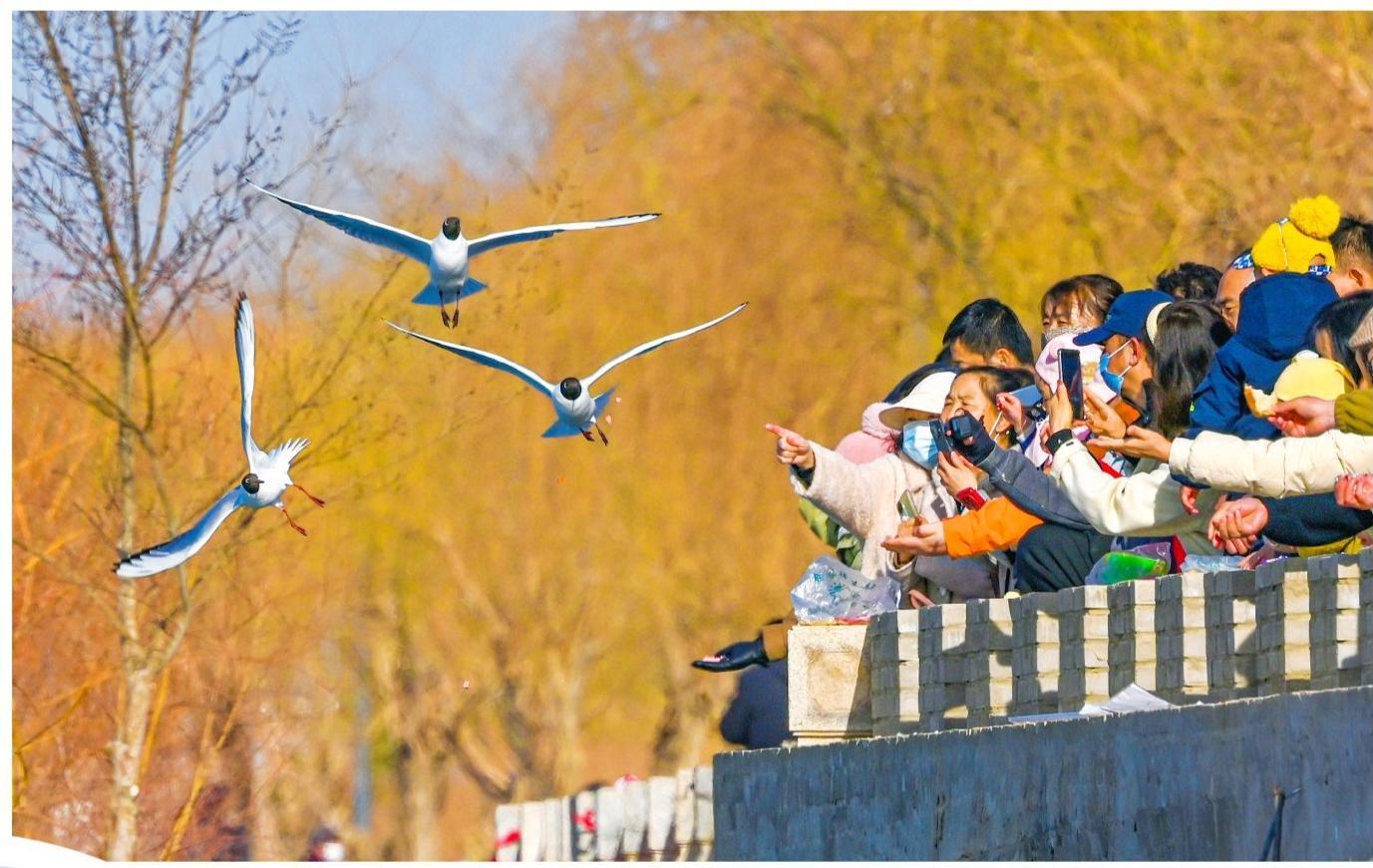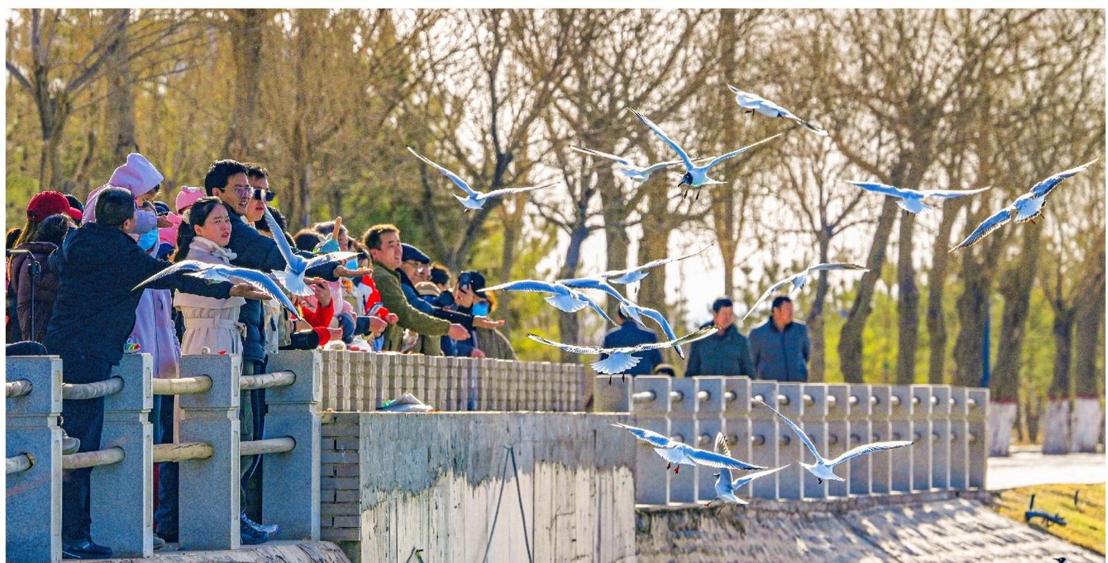 戈壁雄關(guān)迎鷗鳥,羽翼翩翩贊綠洲。連日來,大批鷗鳥分批飛抵我市討賴河生態(tài)文化景區(qū),或舒展輕盈舞姿與岸邊市民互動(dòng),或在氣盾壩上“列隊(duì)”小憩,或結(jié)伴翱翔感受春日暖陽,盡情享受著我市持續(xù)向好的生態(tài)環(huán)境。(照片由融媒體中心記者 李巍 攝)