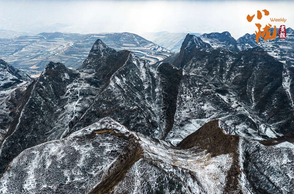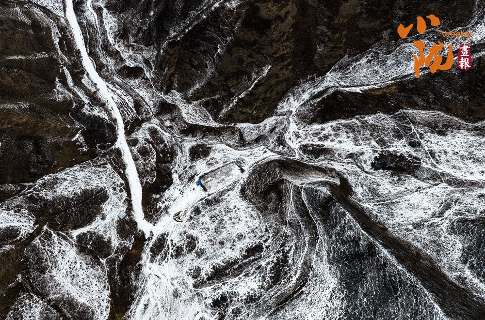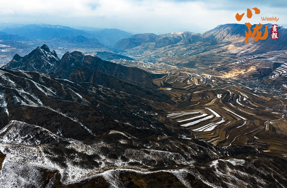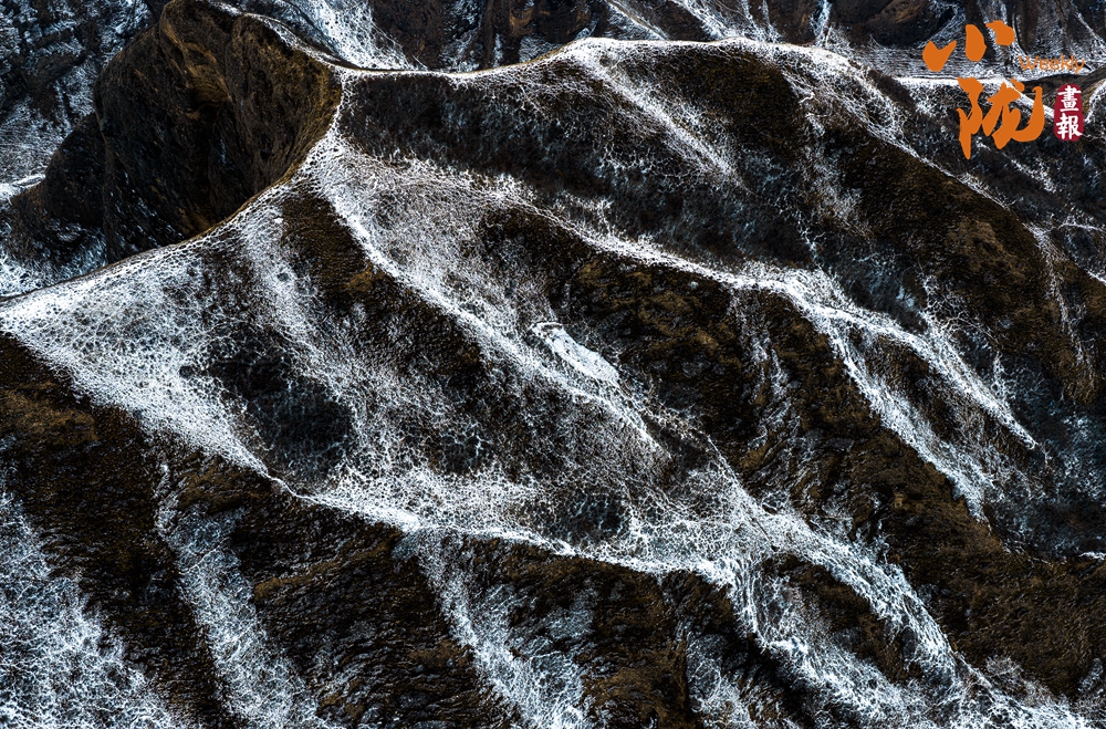 春雪覆上丹霞,用那一抹溫潤的白,輕柔地勾勒出山巒起伏的輪廓。白黑交織間,丹霞少了些棱角的凌厲,多了幾分被春雪浸潤的柔情,宛如天地為自己留下的一筆詩意。